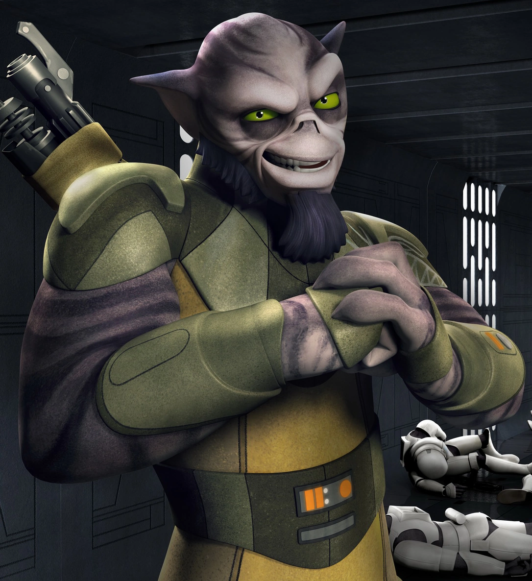 - In "Spark of Rebellion", Zeb attempting to pass off as a "rare hairless Wookiee" is a reference to the fact that his species, the Lasats, are based on the concept art for Wookiees.