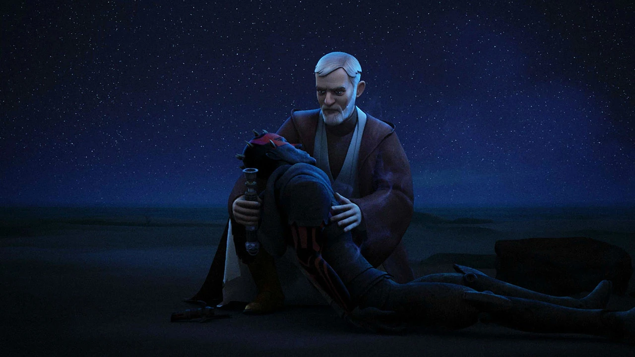 After the Galactic Empire rose to power, Maul became stranded on the ancient Sith world of Malachor until he was found by young rebel and Jedi apprentice, Ezra Bridger, who he sought as his apprentice. After killing the Inquisitors and blinding Ezra's master Kanan Jarrus, Maul escaped Malachor in search of Obi-Wan, in the hopes of finishing his longtime rival once and for all. After tracking Kenobi to Tatooine, Maul engaged him in a brief Lightsaber duel, which resulted in Maul's demise. Before dying, Maul was comforted with the knowledge that Kenobi was protecting the Chosen One, finding some peace in the idea that the end of the Sith was at hand and that he would be avenged.