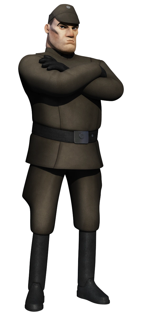 Myles Grint spent much of his time on Lothal alongside his commander, Cumberlayne Aresko. Together, the two helped bring oppression to the planet's people, often charging Capital City's citizens for minor incidents.