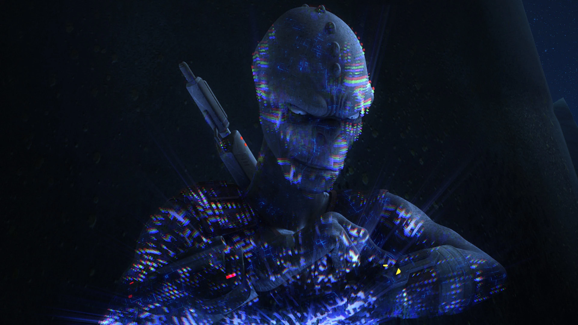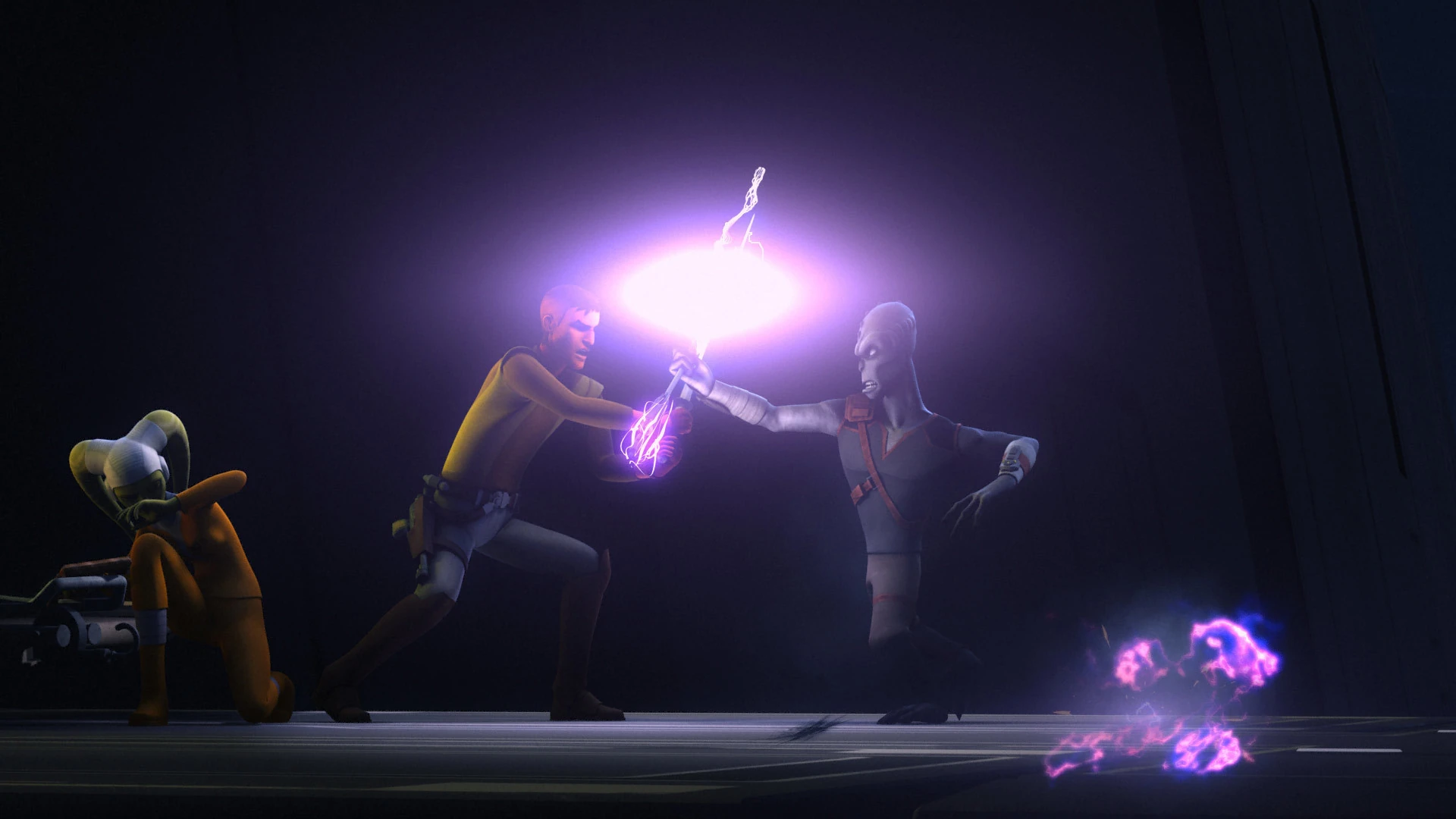 Rukh using his Sinrich Optical Dephaser against Garazeb Orrelios and Sabine Wren.