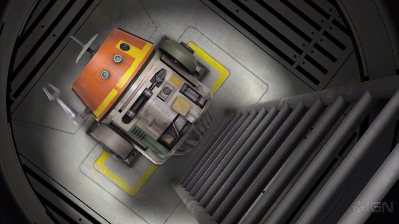 The crew's astromech droid, Chopper, is then sent to repair the comms, by the ship's pilot Hera. On his way to the comms, the ship's gunner Kanan orders him to go back and fix the shields, as well as to tell Hera to fly better.